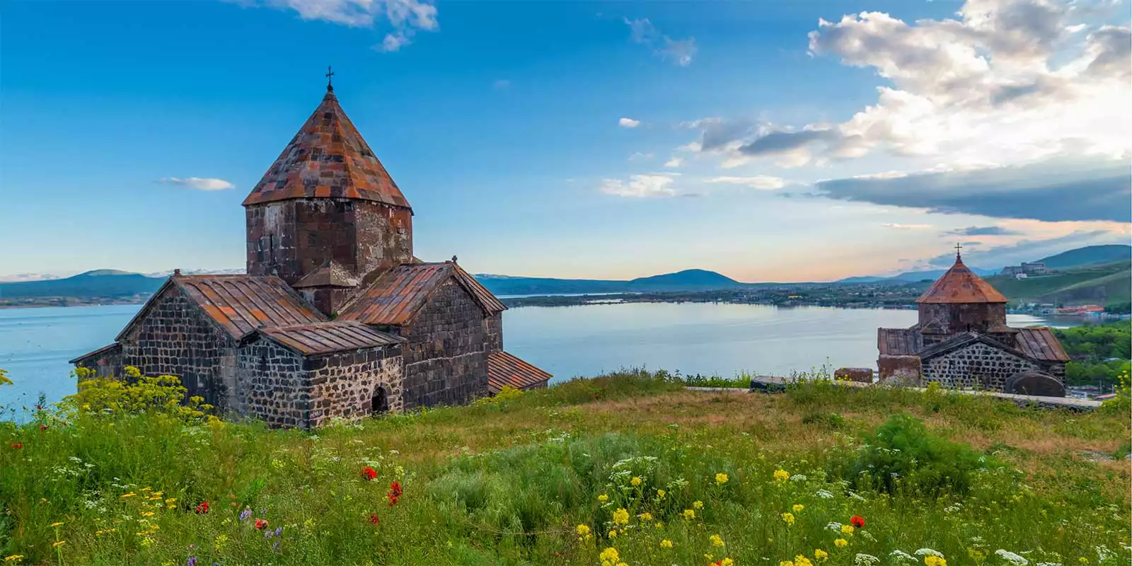 The level of Lake Sevan was higher than it is today, so this monastic complex was located on an island. After the lake was drained the level fell, and it is now a peninsula. The columns of this monastery were important examples of Armenian wood-carving art and are now preserved in the Armenian State History Museum.