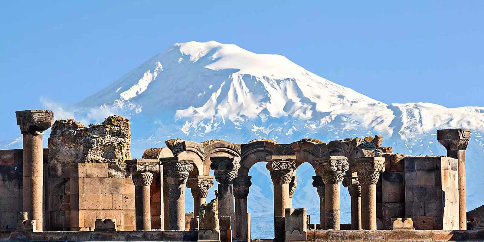 The amazing backdrop to this cathedral is the dormant volcano Mount Ararat with its legend of angry gods sending a flood to punish humankind, and once it subsided the only family left on earth climbed out of the Ark at Ararat and humanity started once again.