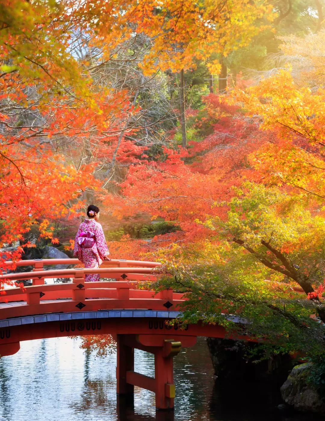 Explore Japan during Autumn leaves season where the cooler weather brings to life a breathtaking display of colour. Vivid and intense, the red, orange, and yellow foliage of the autumn leaves create an iridescent sparkle throughout the country