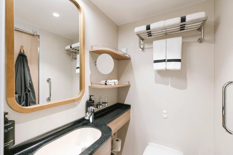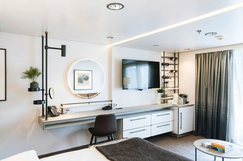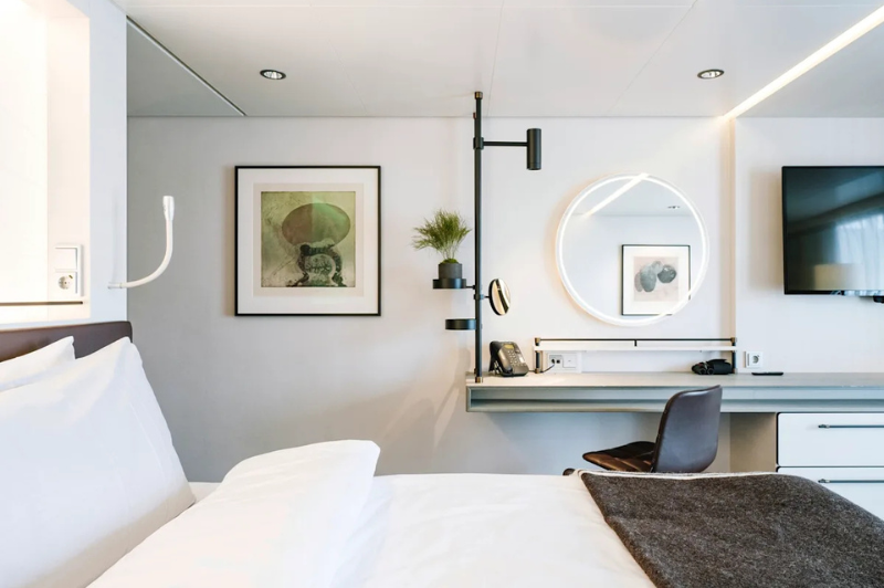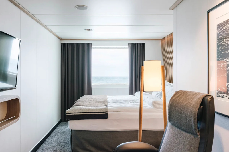 The rugged scenery will be reflected inside the ship through the use of Scandinavian materials from nature, such as granite, oak, birch, and wool that invoke a relaxed and comfortable atmosphere in which to unwind.