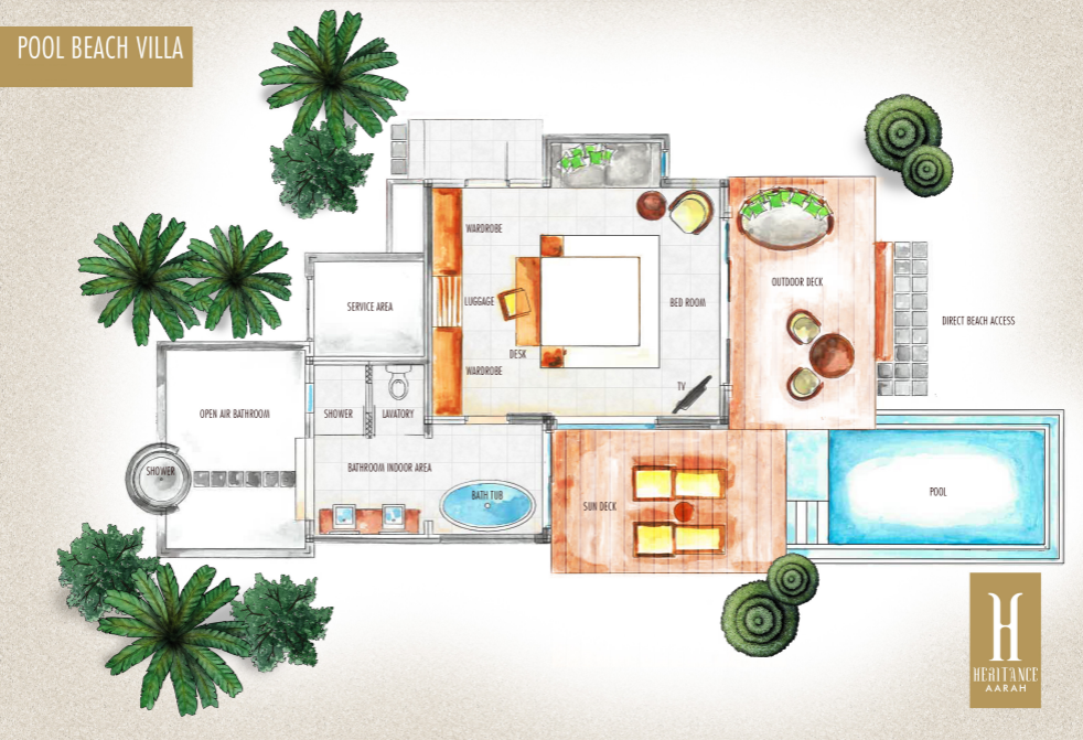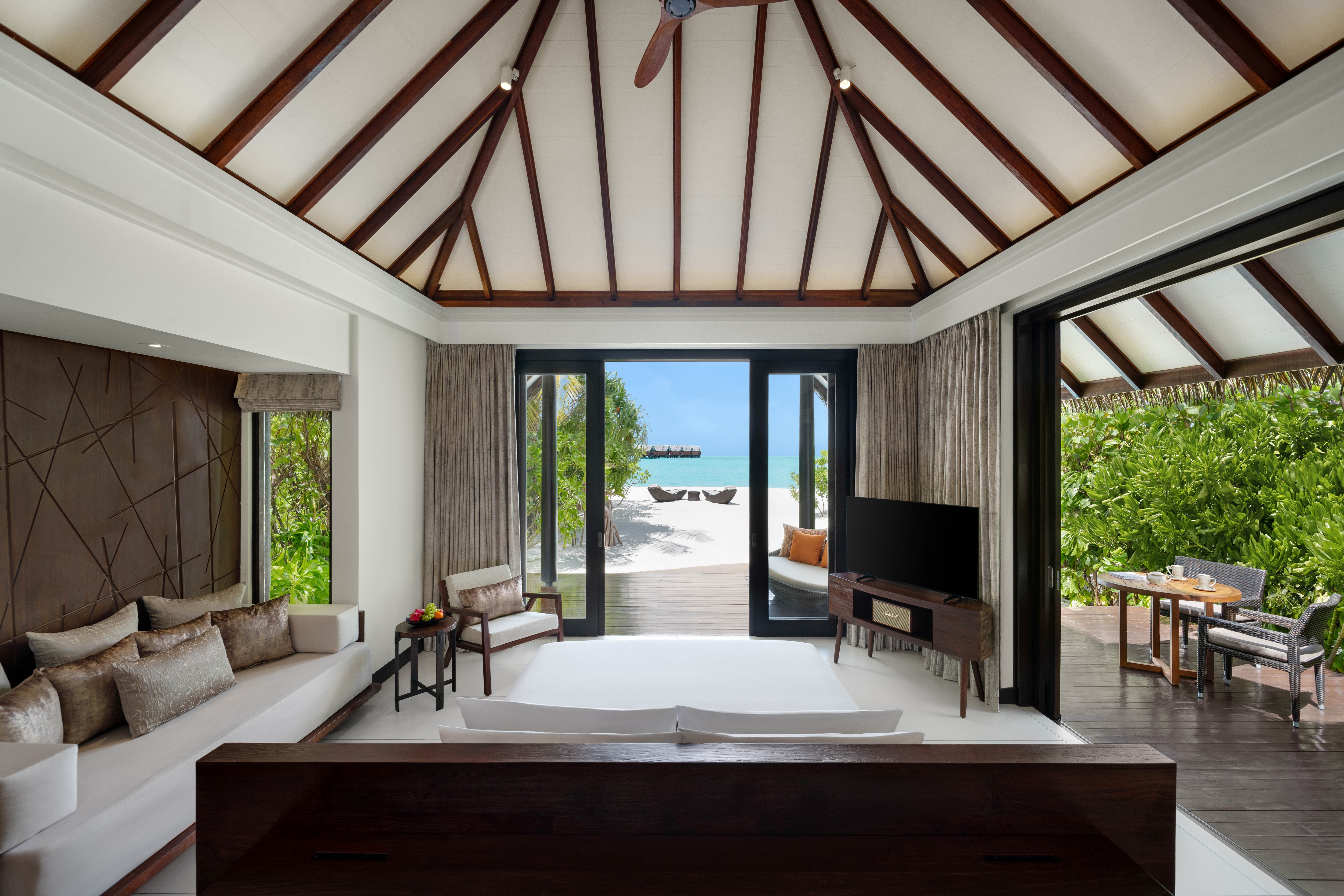 All room types include: Flat-screen TV with cable channels, Marshall Bluetooth speaker, pillow menu, in-room safe, complimentary Wi-Fi, snorkelling fins and masks, fully stocked mini bar (replenished daily), tea/coffee and espresso making facilities and personalised butler service.