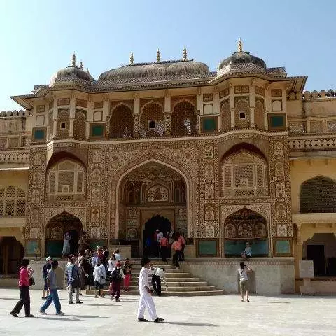 Begin the day with a brief photo stop at Hawa Mahal, the iconic 'Palace of the Winds', before travelling out of the city to admire the majestic Amber Fort, the colossal 16th century yellow and pink sandstone fort just 11 kilometers out of Jaipur. Back in the city, head to a craft centre to learn about traditional artistries such as block printing and carpet weaving.