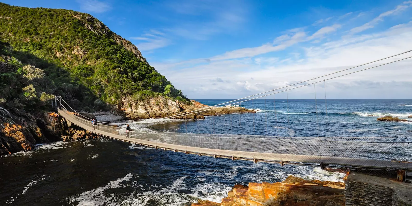 One of the iconic sights of the park is the Storms River Mouth, where the clear waters of the river, having just passed through a rocky canyon, meet the ocean. The canyon and river are crossed by a dramatic suspension bridge, which leads you to more beautiful, old forest on the other side – crossing it is a must!